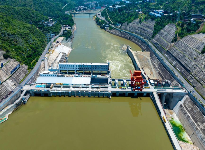 項目裝機39萬千瓦,最大壩高73米,總投資60.27億元。目前大壩廠房工程全線澆筑到頂,1~3號機組已投產(chǎn)發(fā)電,攔污柵、進口檢修門、尾水事故檢修門已完成安裝,1~6號弧形工作門已完成安裝,正在推進4號機組無水調(diào)試以及7號弧形工作門安裝工作。